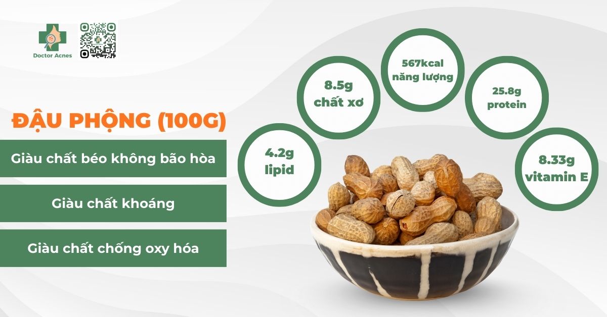 Đậu phộng là một loại thực phẩm phổ biến ở Việt Nam, xuất hiện trong nhiều món ăn từ dân dã đến hiện đại. Từ đậu phộng rang muối, chè đậu phộng đến bơ đậu phộng, là một loại thực phẩm giàu dinh dưỡng. Tuy nhiên, nhiều người lo ngại rằng ăn đậu phộng có thể gây mụn, đặc biệt là ở những người có làn da dầu hoặc dễ bị mụn. Trong bài viết này, Doctor Acnes sẽ phân tích dựa trên các nghiên cứu khoa học để giải đáp câu hỏi trên và đưa ra những cách ăn đậu phộng hợp lý để vừa có lợi ích vừa giảm nguy cơ nổi mụn.