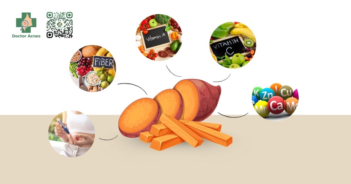 - Chỉ số đường huyết ở mức trung bình: so với nhiều nguồn tinh bột tinh chế, khoai lang có chỉ số đường huyết thấp hơn khi được luộc hoặc hấp. Điều này giúp hạn chế dao động đường huyết sau ăn và giảm nguy cơ kích thích tuyến bã hoạt động quá mức ở một số cơ địa dễ nổi mụn.