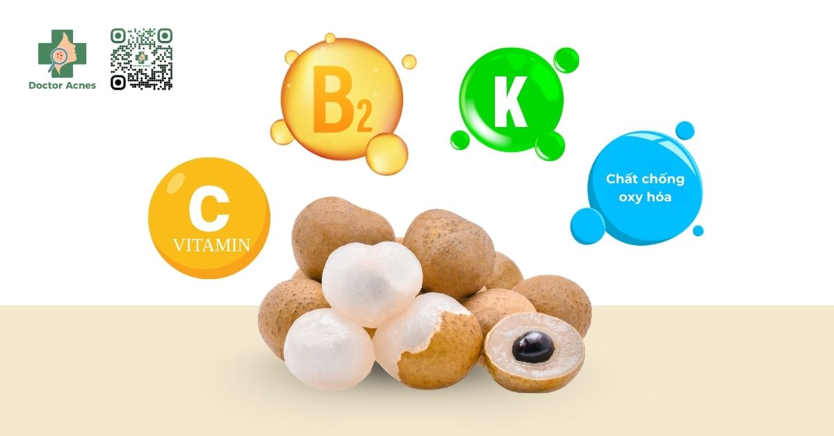 Bên cạnh đó, nhãn còn cung cấp kali là khoáng chất cần thiết cho việc điều hòa huyết áp và hỗ trợ tuần hoàn máu. Tuần hoàn ổn định giúp da hồng hào hơn và hạn chế tình trạng da xỉn màu do thiếu oxy. Ngoài ra, nhãn chứa một lượng nhỏ riboflavin, vitamin B2 cùng các polyphenol có khả năng hỗ trợ chống oxy hóa góp phần bảo vệ tế bào trước tác động của gốc tự do.