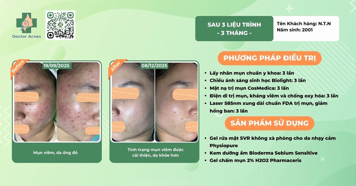 Nếu làn da đang có mụn viêm, mụn kéo dài hoặc dễ bùng phát sau ăn uống, nên liên hệ sớm Phòng khám Doctor Acnes để được Bác sĩ thăm khám, xác định nguyên nhân và xây dựng hướng điều trị phù hợp giúp da ổn định và cải thiện bền vững hơn.