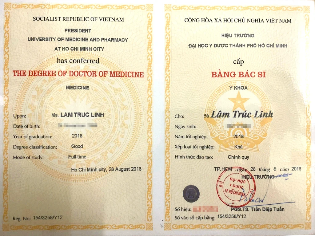 - Tốt nghiệp Bác sĩ Y khoa, Đại học Y Dược TP.HCM (2018)