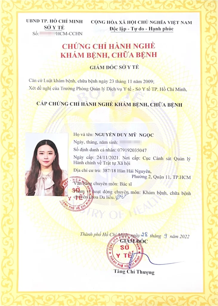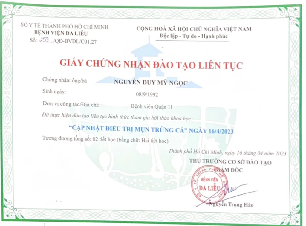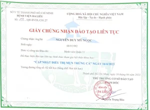 • Chứng chỉ hành nghề khám chữa bệnh chuyên khoa Da liễu (2022)