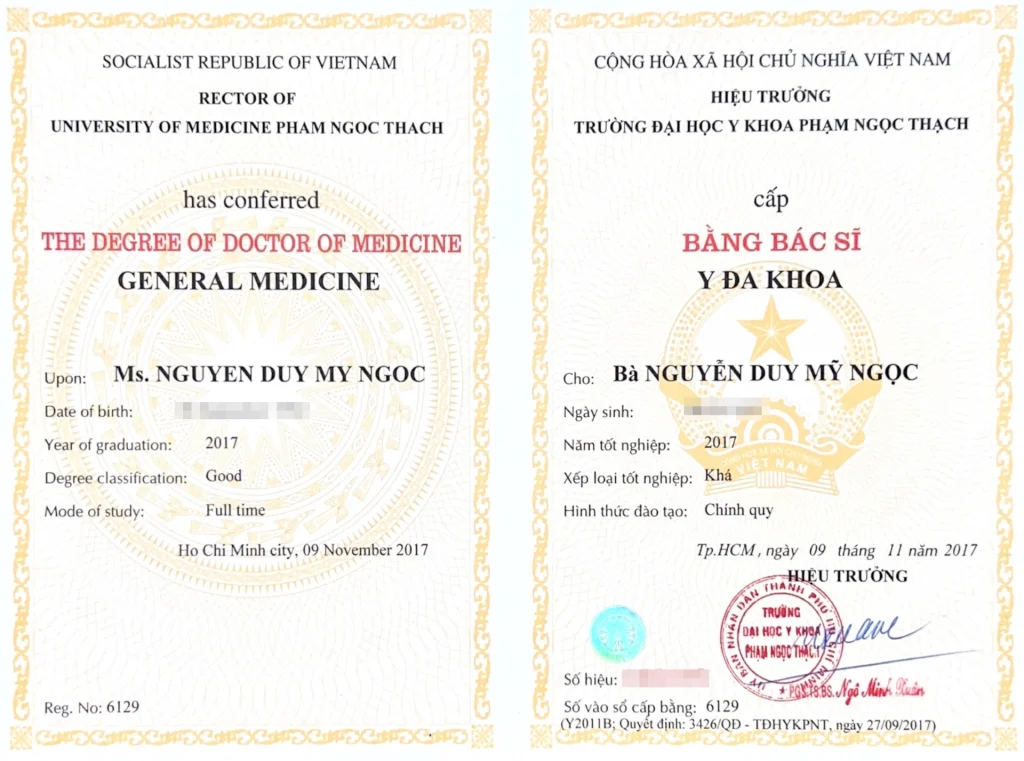 • Tốt nghiệp Bác sĩ đa khoa, Đại học Y Khoa Phạm Ngọc Thạch (2017)