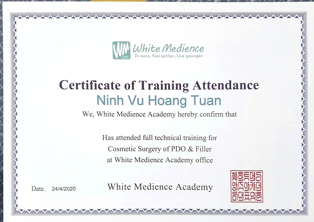 - Chứng chỉ Căng chỉ da và trẻ hóa da (2020)