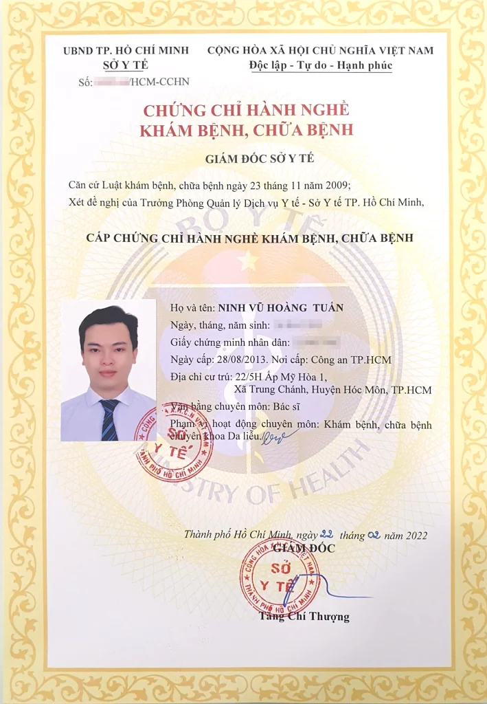 - Chứng chỉ hành nghề khám chữa bệnh chuyên khoa Da liễu (2022)
