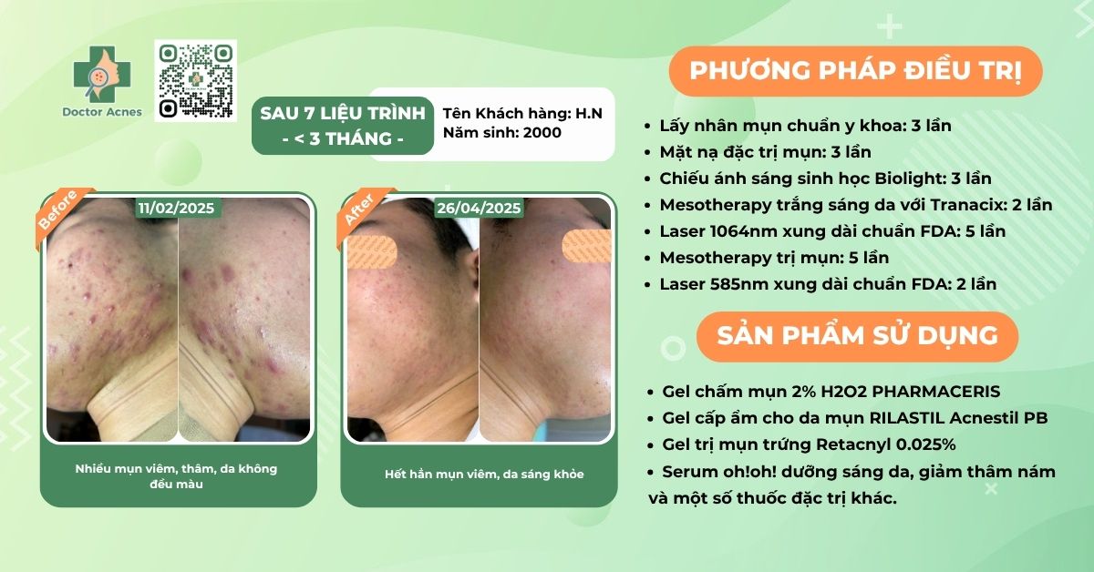 Liệu trình trị mụn tại Doctor Acnes được cá thể hóa theo từng tình trạng da, kết hợp đa dạng giữa thuốc và công nghệ cao, giúp mụn được kiểm soát hiệu quả, từ đó giảm rủi ro khi makeup và giúp người bệnh vẫn giữ được sự tự tin trong công việc cũng như đời sống hàng ngày.