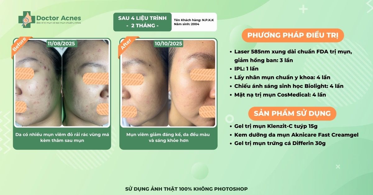 Các liệu trình được thực hiện theo chuẩn y khoa, chú trọng an toàn và hiệu quả lâu dài cho làn da. Với những trường hợp da xỉn màu, thâm sau mụn hoặc chưa biết nên bắt đầu chăm sóc từ đâu, Doctor Acnes là địa chỉ phù hợp để thăm khám, tư vấn và điều trị đúng hướng.