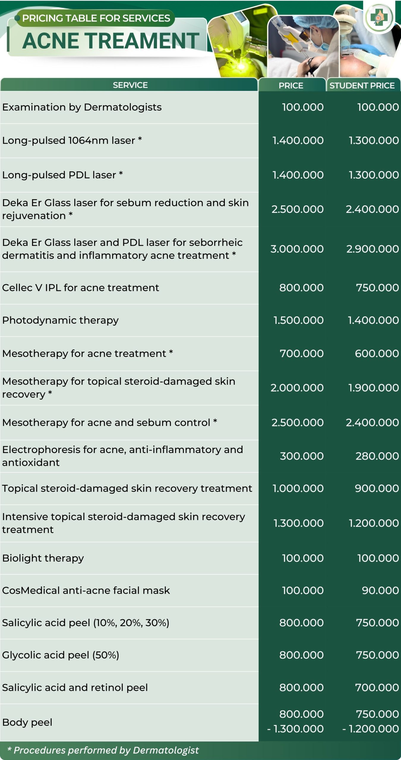 Doctor Acnes Medical Clinic is constantly researching to enhance treatment procedures following international guidelines of American Dermatology Association, Singapore Dermatology Association, and Vietnamese Ministry of Health. We insist on bringing evidence-based science to dermatology in a methodical and medical manner.