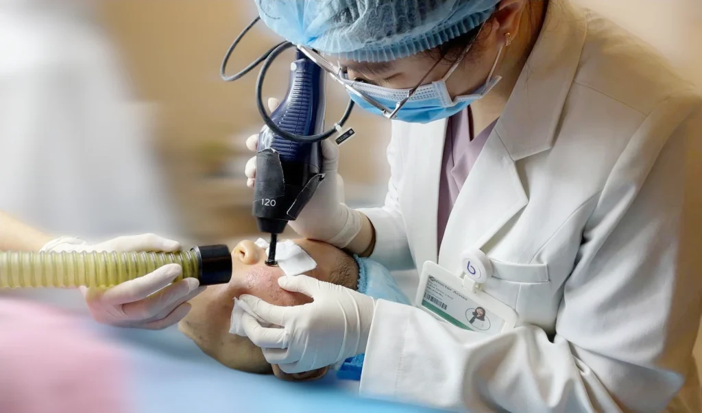 The Doctor adjusts machine parameters according to the prescription for each patient, then directly performs laser irradiation on the treatment area.