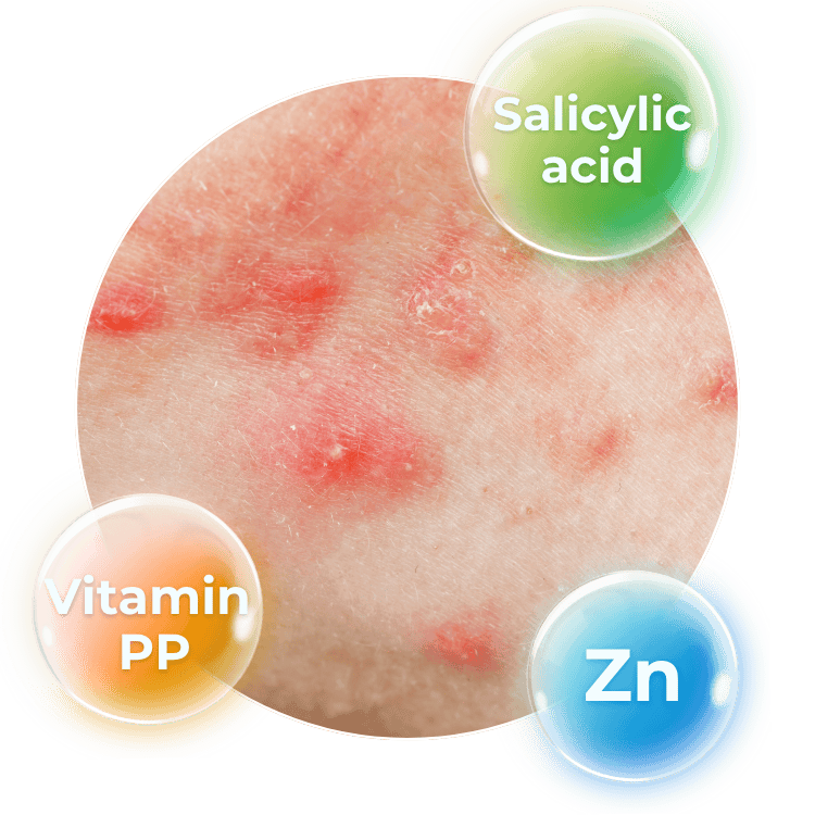 Anti-inflammatory & sebum-regulating group: salicylic acid, zinc, vitamin PP, B-group vitamins help reduce swelling/inflammation and control oil (two main causes of acne).