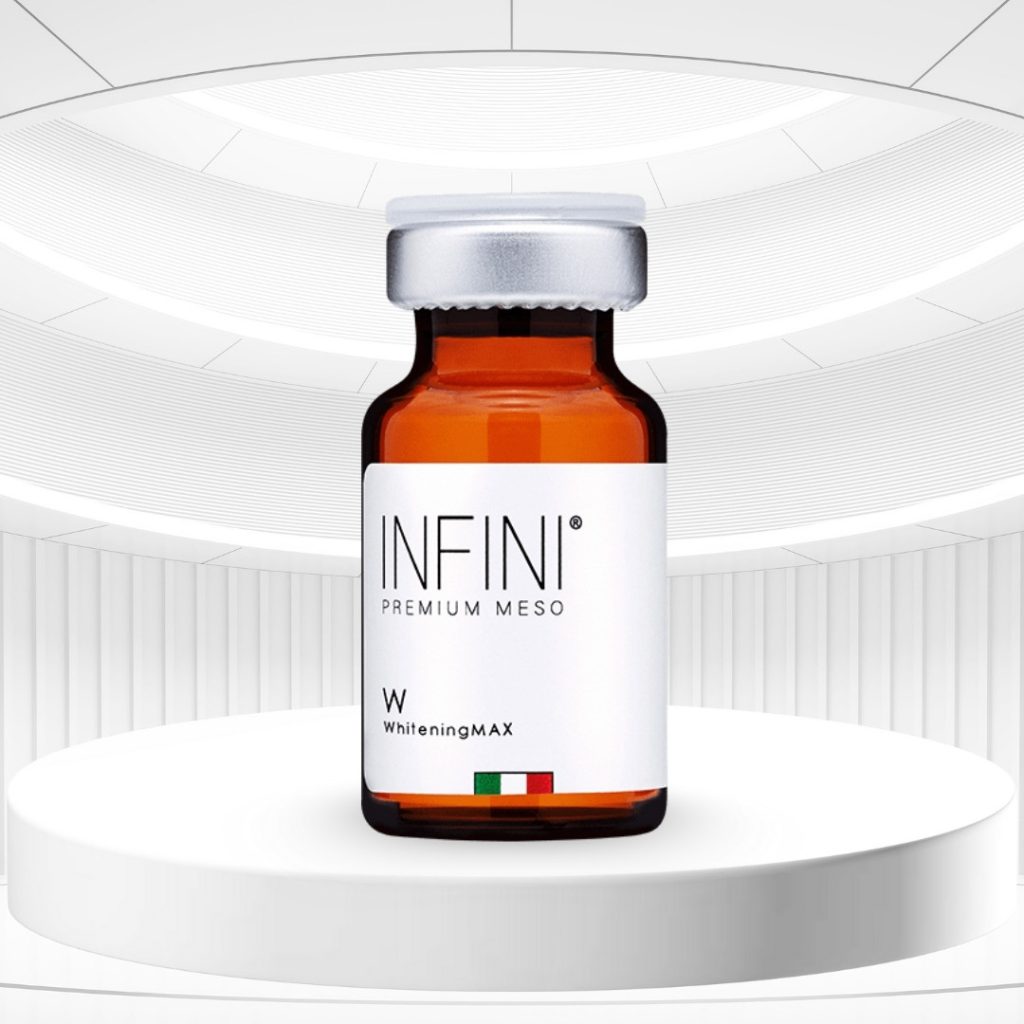 - Infini is a high-end aesthetic pharmaceutical brand from Italy. Infini Premium Meso WhiteningMax is a mesotherapy cocktail combining hyaluronic acid content of 30mg/10ml to increase moisture and glowing smooth effect, while combining a group of active ingredients supporting skin brightening including tranexamic acid, kojic acid, glutathione, arbutin, and peptide complex with oligopeptide 34 to optimize the ability to even skin tone and improve skin surface. Thanks to the mechanism of both hydrating and supporting brightening, the overall skin looks smoother, fresher, and more radiant.