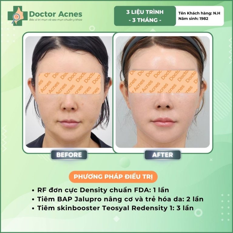 One week after injection, when the skin recovers and redness subsides, the skin will become brighter, tighter, smoother, and more elastic; wrinkles fade. To achieve optimal results, 3 – 5 sessions are usually needed; after each injection session, the skin will become increasingly glowing and brighter. Effectiveness lasts 6 – 12 months when combined with proper skin care.