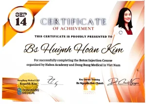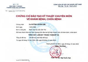 Dr. Huynh Hoan Kim graduated with a Master’s degree in Dermatology from the University of Medicine and Pharmacy at Ho Chi Minh City. The doctor has many years of experience in the examination and treatment of acne and post-acne issues such as dark spots and acne scars; expertise in treating atrophic and hypertrophic scars; and providing consultations for atopic dermatitis, fungal skin infections, seborrheic dermatitis, skin aging, and other dermatological conditions.