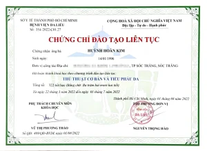 - Certificate in Basic Procedures and Skin Surgery, HCMC Hospital of Dermatology (2022)