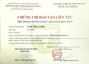 Certificate in Medical Aesthetics, Pham Ngoc Thach University of Medicine (2023)