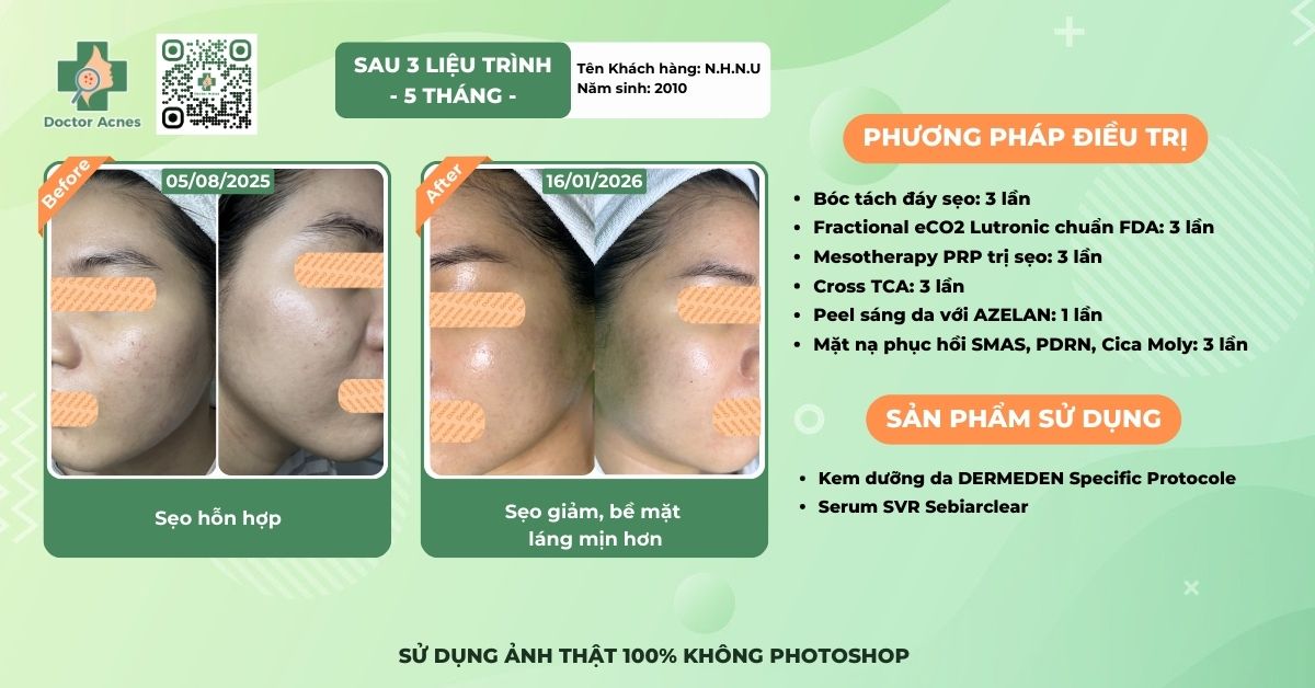 Câu chuyện của Nhật Uyên cho thấy với những trường hợp sẹo mụn mức độ nhẹ và chưa kéo dài quá lâu, việc can thiệp đúng phương pháp và đúng thời điểm có thể mang lại đáp ứng tích cực khá sớm. Điều trị sẹo mụn không chỉ là thay đổi diện mạo bên ngoài mà còn là cách giúp mỗi người lấy lại sự thoải mái và chủ động khi đối diện với chính mình.