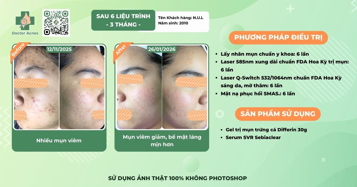 Chính vì vậy, việc lựa chọn cơ sở điều trị uy tín như Phòng khám Da liễu Doctor Acnes là vô cùng quan trọng. Tại đây, mỗi khách hàng sẽ được các Bác sĩ có chuyên môn cao thăm khám và xây dựng phác đồ điều trị phù hợp. Sự kết hợp giữa quy trình skincare chuẩn tại nhà và các liệu pháp thẩm mỹ nội khoa tại Phòng khám sẽ mang lại hiệu quả nhanh chóng, giúp bạn sớm sở hữu làn da sạch mụn và mịn màng.